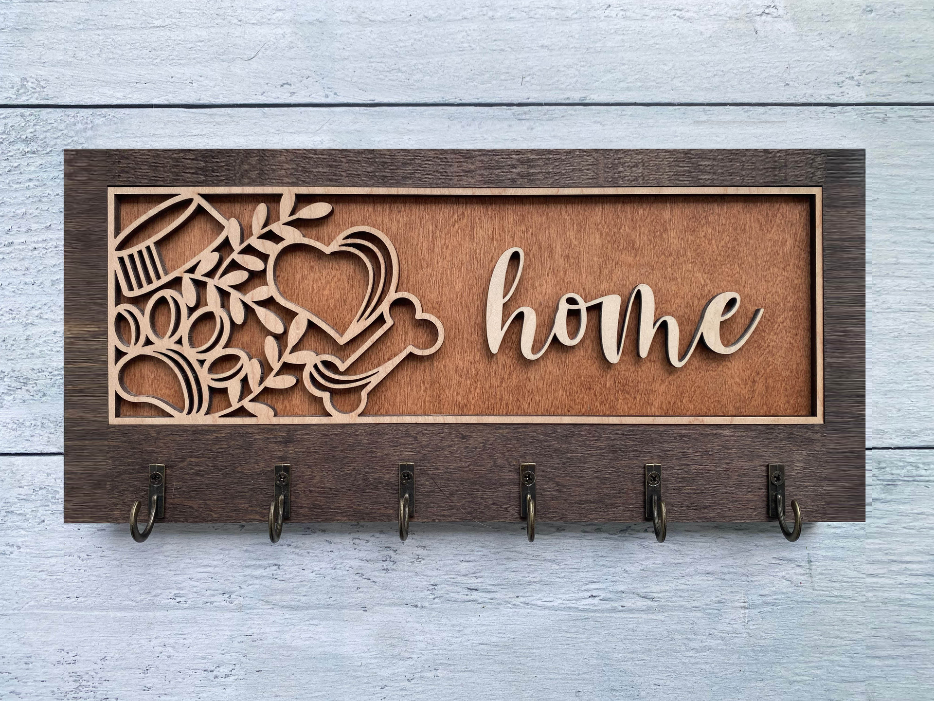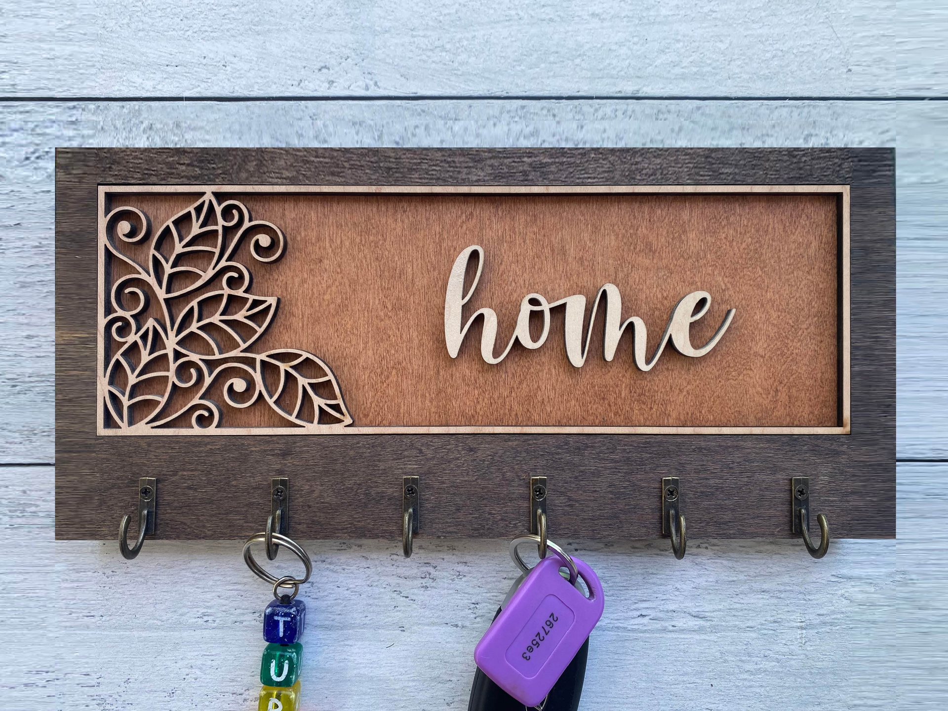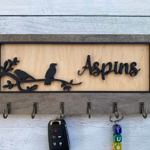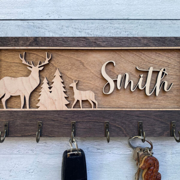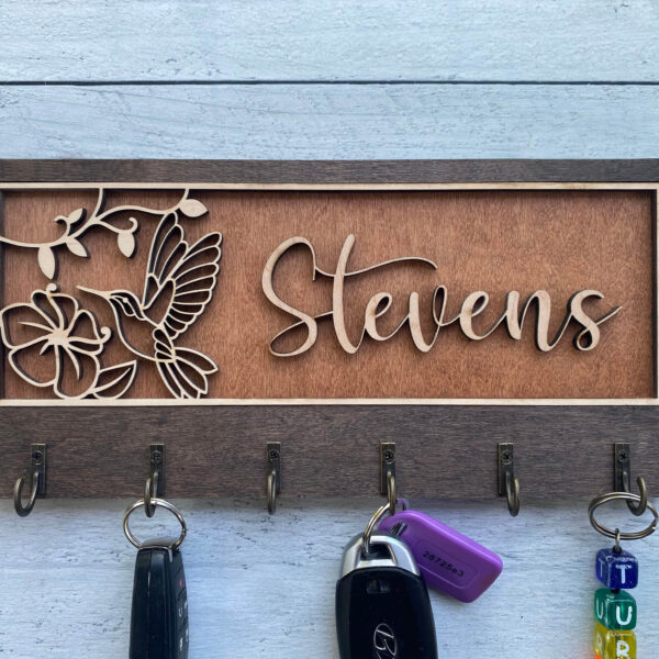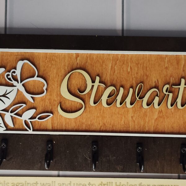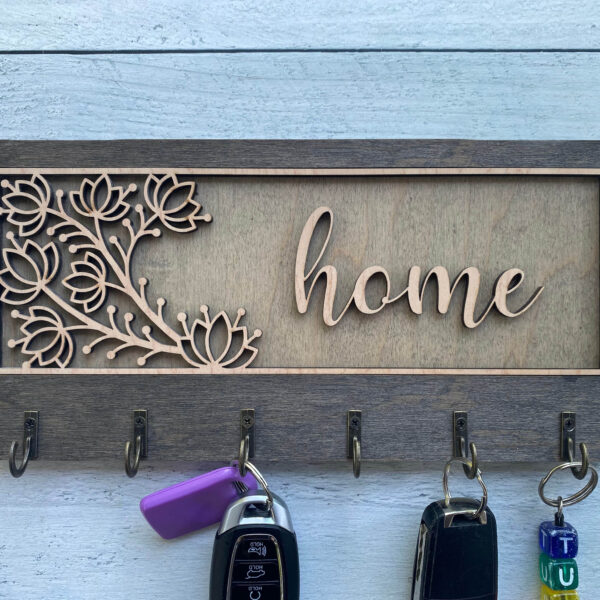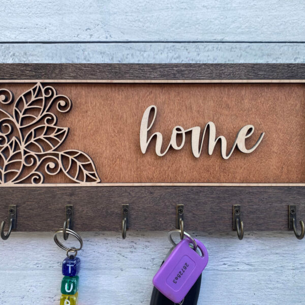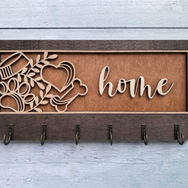 Add warmth and organization to your home with this beautifully handcrafted wooden key hanger, precision laser-cut for flawless detail. Featuring several charming designs and five sturdy hooks, this unique wall organizer is fully customizable to reflect your personality, style, or heartfelt message.