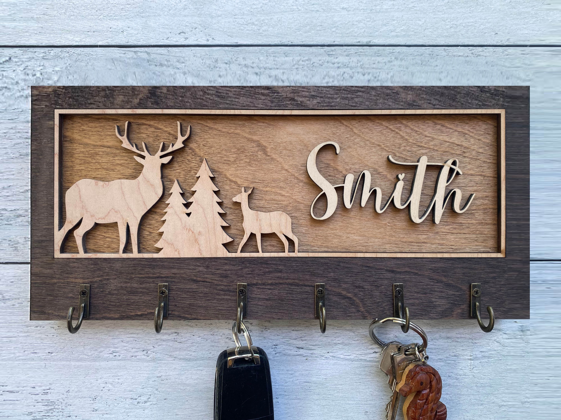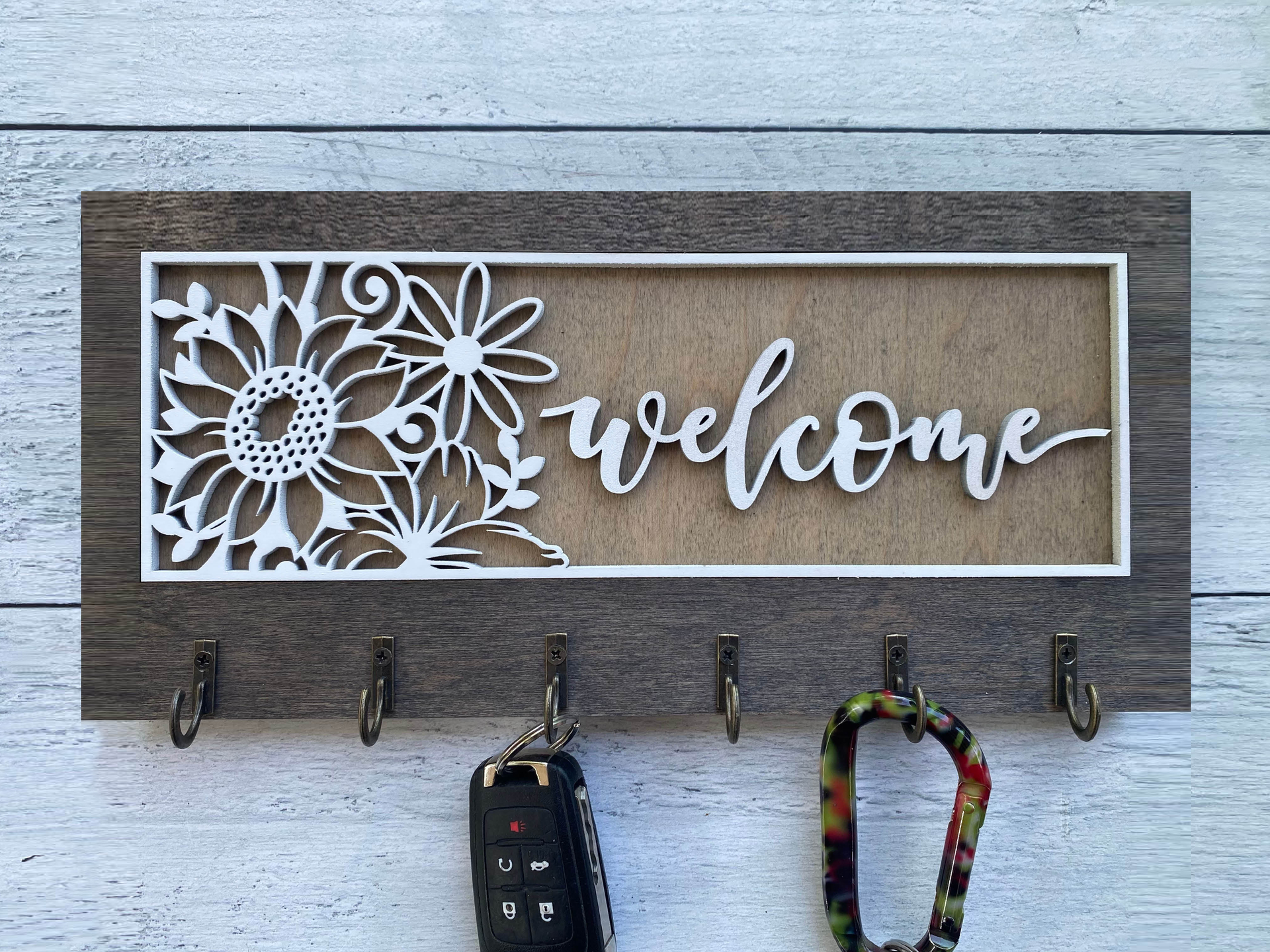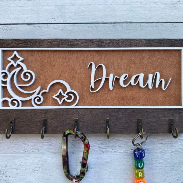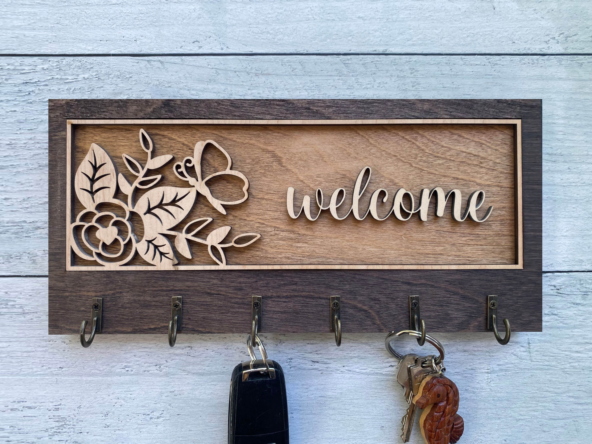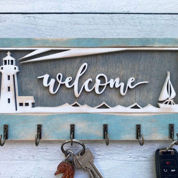 Add warmth and organization to your home with this beautifully handcrafted wooden key hanger, precision laser-cut for flawless detail. Featuring several charming designs and five sturdy hooks, this unique wall organizer is fully customizable to reflect your personality, style, or heartfelt message.