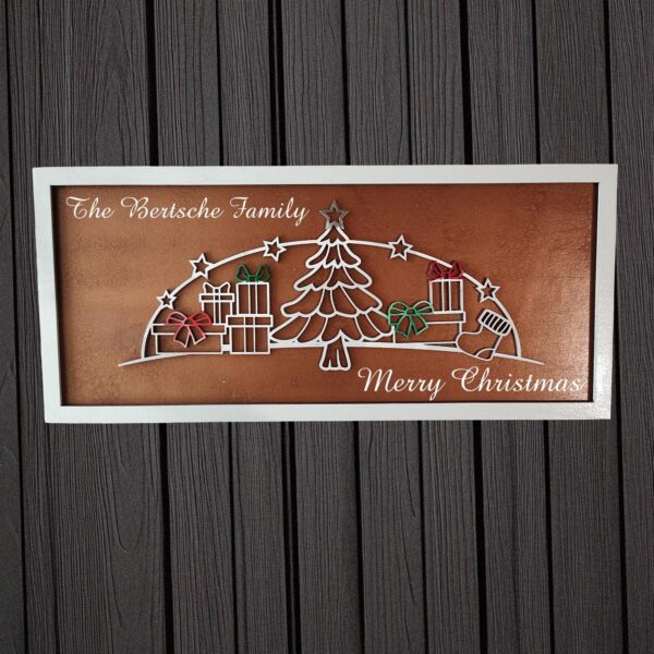 Celebrate the season with this beautifully crafted 18×10 Holiday Plaque, designed to bring warmth and joy to your winter celebrations. Made from premium wood and precision laser-cut for crisp detail, this plaque can features one of 10 festive scenes Christmas trees, elves, a snowman, gingerbread, the nativity, a menorah and more. Can be customized with the family name or a phrase.
