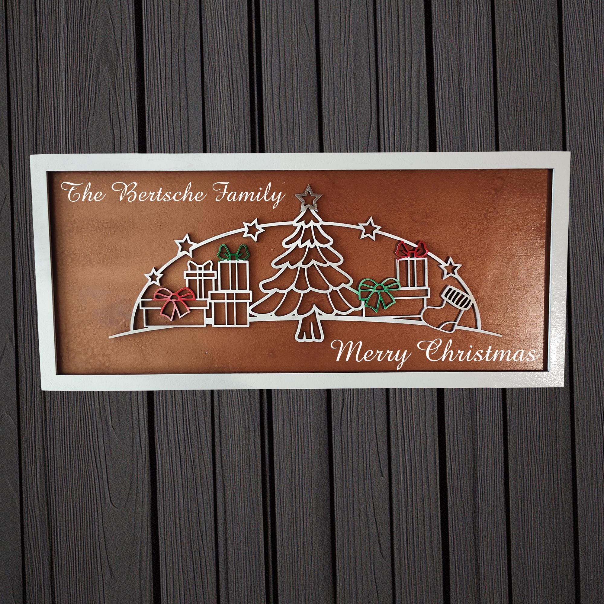 Personalized Laser Cut Holiday Plaque: Customize with Family Name, Winter Decor