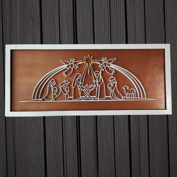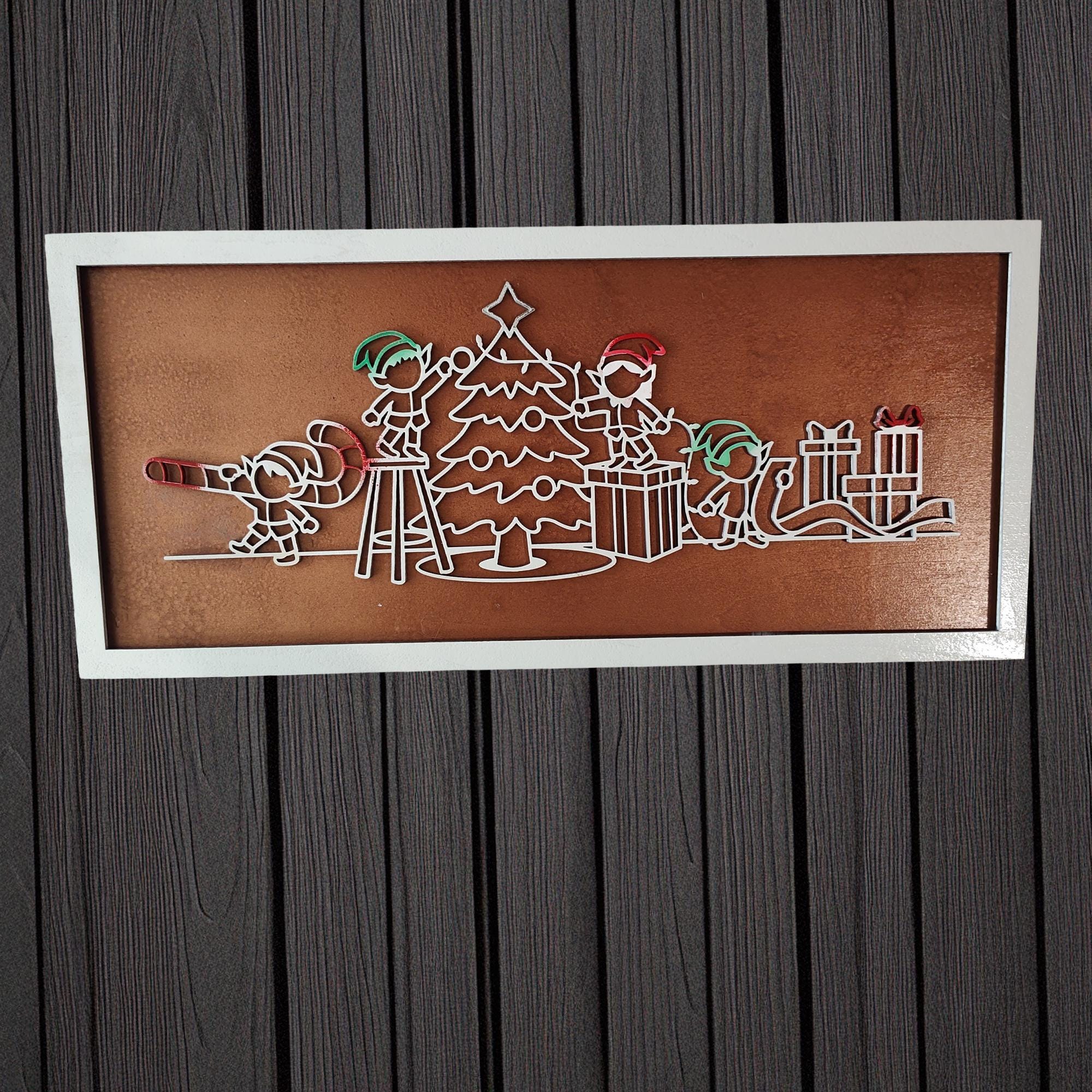 Celebrate the season with this beautifully crafted 18×10 Holiday Plaque, designed to bring warmth and joy to your winter celebrations. Made from premium wood and precision laser-cut for crisp detail, this plaque can features one of 10 festive scenes Christmas trees, elves, a snowman, gingerbread, the nativity, a menorah and more.